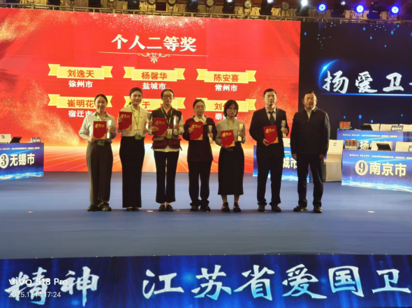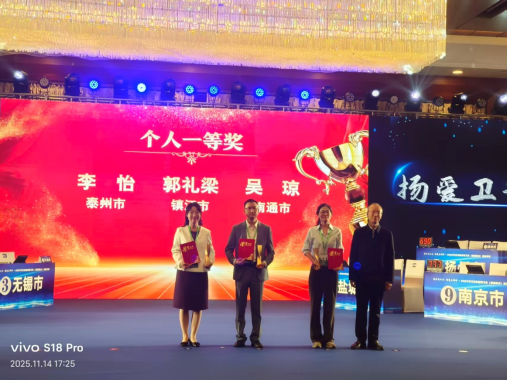 11月13日至14日,泰州市代表队在由省卫生健康委、省机关工委、省总工会、省疾控局联合主办的全省爱国卫生(健康促进)技能竞赛中,凭借强劲实力脱颖而出,斩获团体第一名,4名参赛选手悉数获得个人奖项,其中泰州市疾控中心李怡、孙圆圆分获个人一等奖和三等奖,靖江市新桥镇中心卫生院刘亿林获评个人二等奖,泰兴市妇幼保健院沈韬获个人优秀奖。
